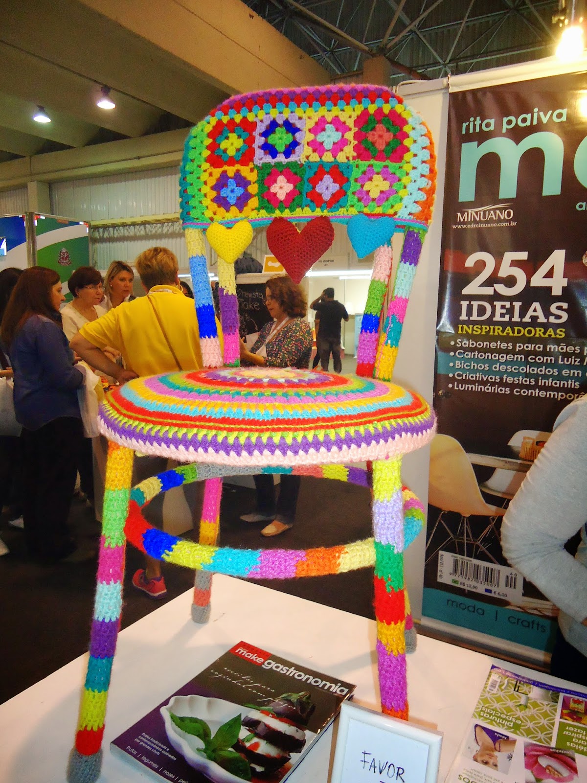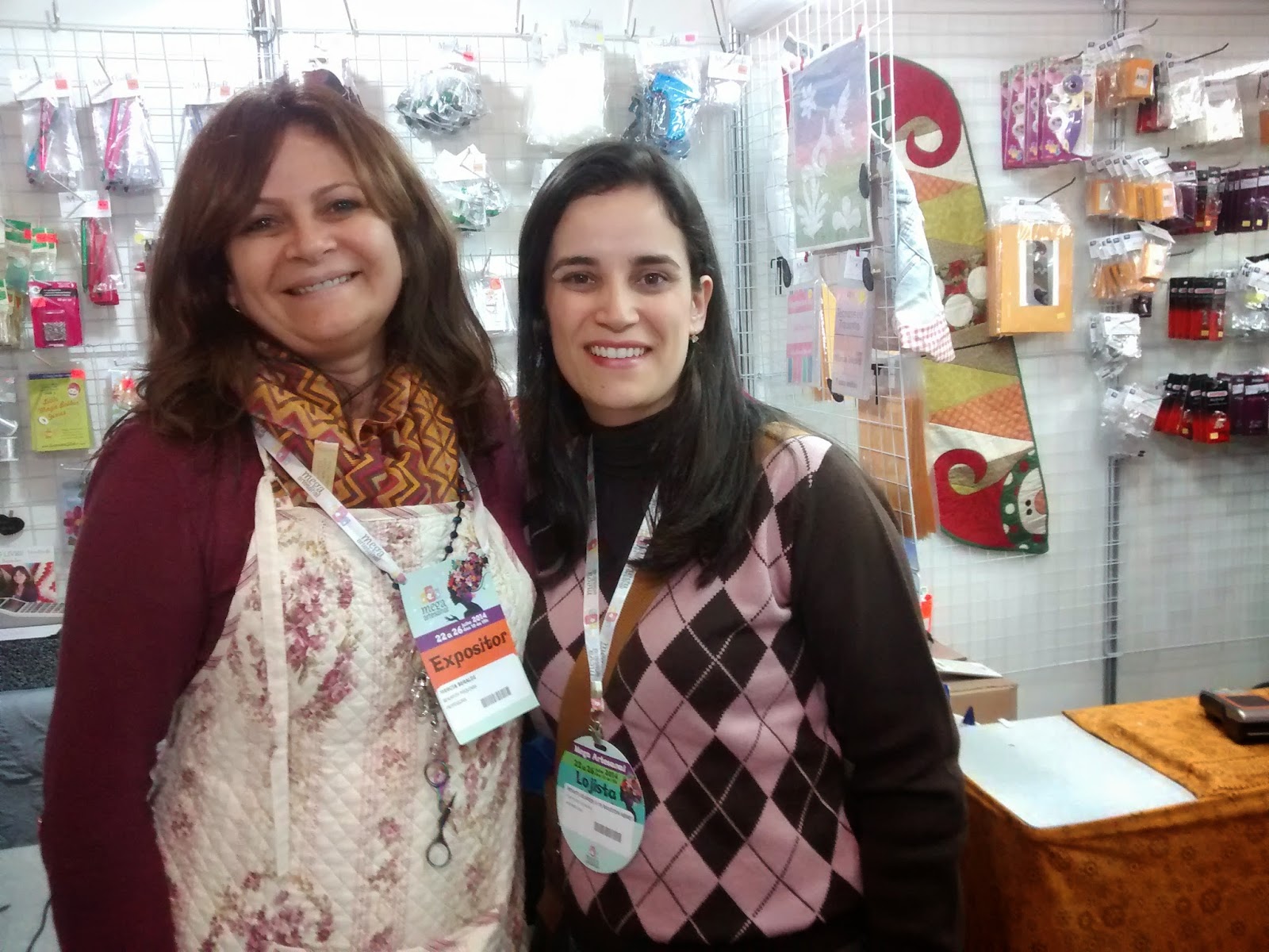 Por lá encontrei várias exposições de trabalhos de encher os olhos!!! Colchas, quadros, cenários inteiros cuidadosamente realizados para quem estivesse visitando. No meio de tantos eventos reunidos num só lugar, alguns stands e arteiros conseguiram organizar um tempinho para ministrar cursos, olha que bacana!!! Experts compartilhando suas artes e habilidades em várias áreas: Patchwork, Crochê, EVA, Tricô, Pintura, Scrap e por aí vai.